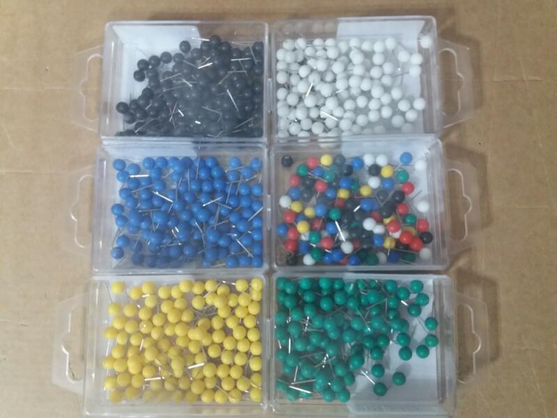 60 db Gömb fejű térképtű. Térkép jelölő tű. Gömbfejű táblatű, gombostű, , , színes jelölő tű 4 mm-es gömbfejjel rövid tűvel. Üzenőtáblaszeg, üzenőtábla tű.