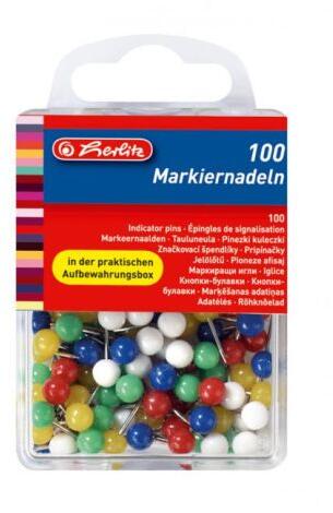 Kerek gombostűk pontok jelölésére térképeken, terveken, szervezeti és hirdetőtáblákon. A fej átmérője 6 mm. 100 darabos kiszerelés vegyes színben.