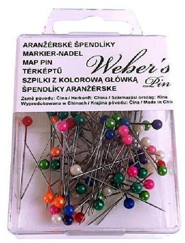 Weber s Gombostű WEBER`S műanyag dobozban színes fejjel - robbitairodaszer